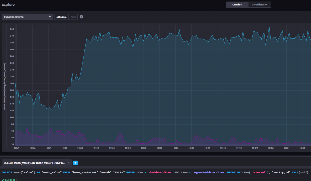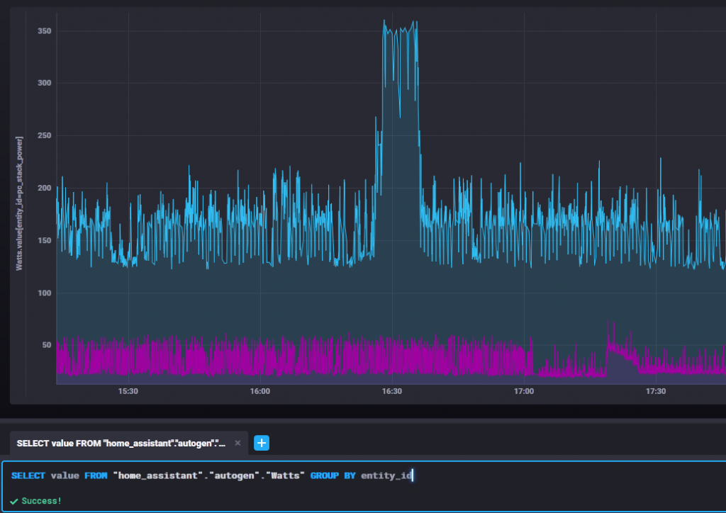 To visualize the data in InfluxDB you can either choose to use Grafana, or play in Chronograf. My preference is to develop some graphs in Chronograf, and use them in Grafana once I’m satisfied.