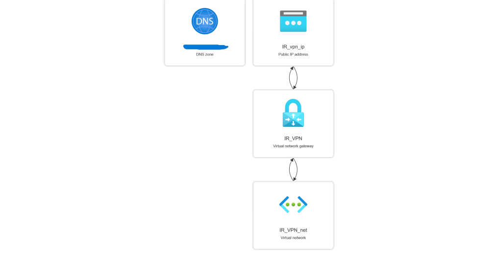 There are several components that will be ‘fixed/permanent’, these are the DNS Zone and VPN. The DNS zone will hold all A records for the instances, where the VPN will also be persistent. According to Azure, this is the topology once deployed: