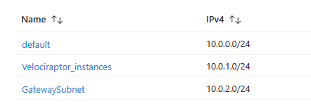 The VPN clients will get a 10.0.2.x address and velociraptor instances will be connected to the Velociraptor_instances subnet and receive a 10.0.1.x address. By doing this we can configure nginx to only allow connections from the VPN clients for the GUI. It is an easy additional layer of security.