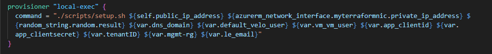 After the VM creation, we also define the provision which will be run after creating the infrastructure
