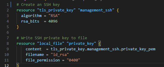 This file defines a private key to be generated and locally saved, this can be used for ssh connections to the server