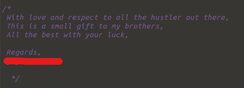 We stay in the same PHP file, there’s a comment, a message from the developer. the message ends with the answer to our question.