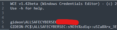 #### 17: Once the attacker gained access to “Gideon,” they pivoted to the AllSafeCyberSec domain controller to steal files. It appears they were successful. What password did they use?