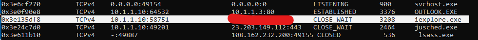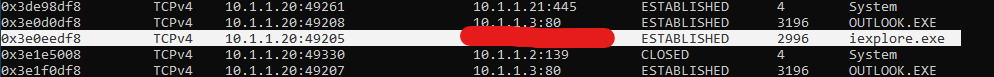 Again an iexplore.exe process with a connection. This is most likely the one we’re looking for!