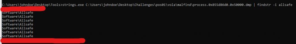 For this question, I ran various “strings” against the previously found dump piped to findstr/grep such as “exe” “allsafe” “allsafecybersec” and “whitelist“.