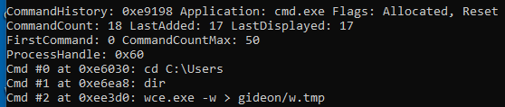 CommandHistory: 0x349ff8 Application: cmd.exe Flags: Allocated, Reset